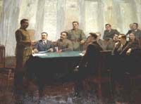 Хор клянется в верности Ленинским идеям и в любви к товарищу Сталину. Из к/ф "Будем как Ленин"