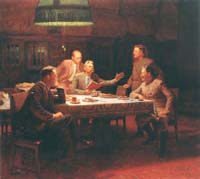 "Мы славим дело Ленина, мы славим дело Сталина..." "Мы с тракторов на танки пересядем, мы оседлаем боевых коней..."